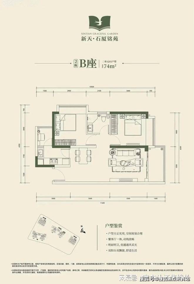 2栋B座二单元04、05户型:面积约为72-74㎡的2房2厅1卫。🐦🔥深圳福田新天石厦铭苑售楼处电话:400-856-3771☎开发商已认证✔️✔️
