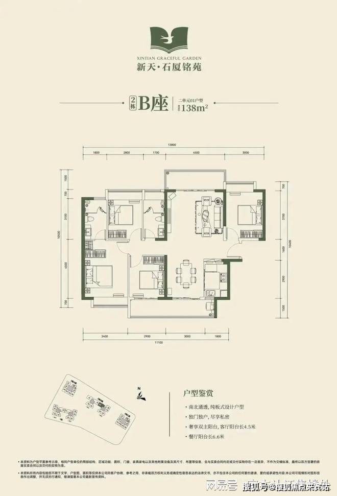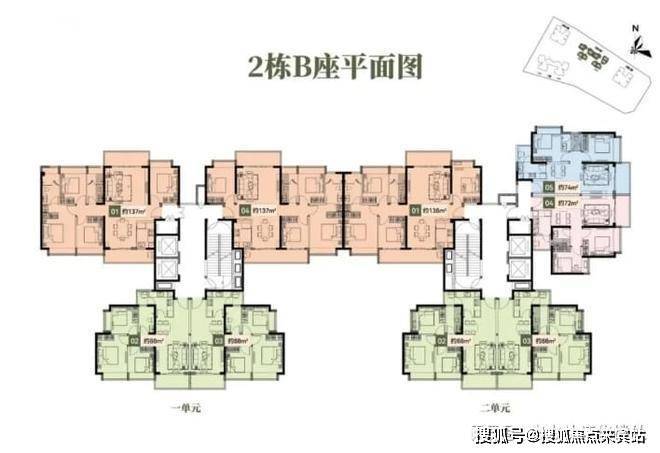2栋B座一单元01、04户型、2栋B座二单元01户型:面积约为137-138㎡的4房2厅2卫;