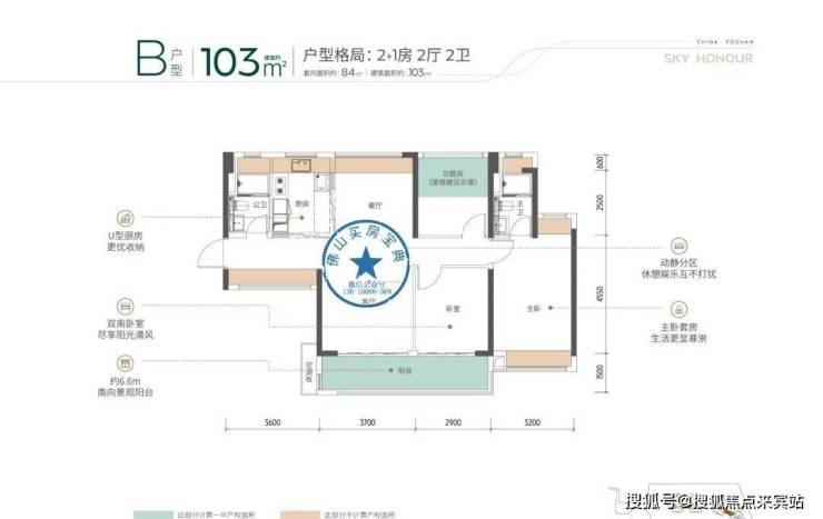 约103㎡三房:6.6米超长南向阳台,将湖光山色引入室内,真正做到“景为所用”。