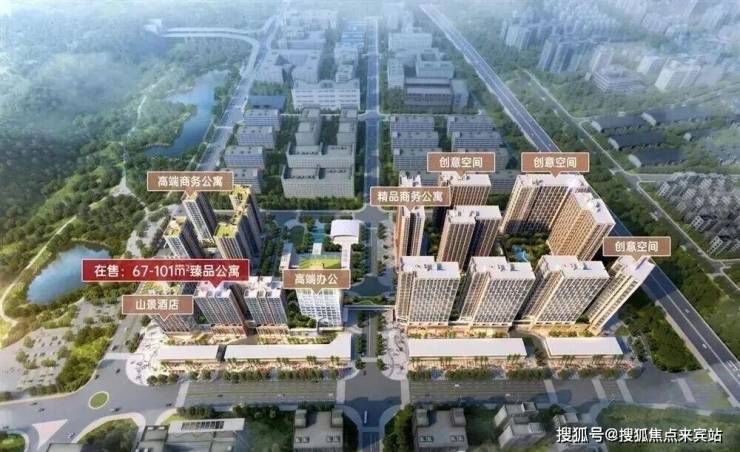 约56万㎡综合体大城,集山景酒店、高端写字楼、 旗舰商业、瞰山公寓为一体的大型城市综合体,打造凤凰山麓封面标杆