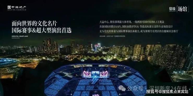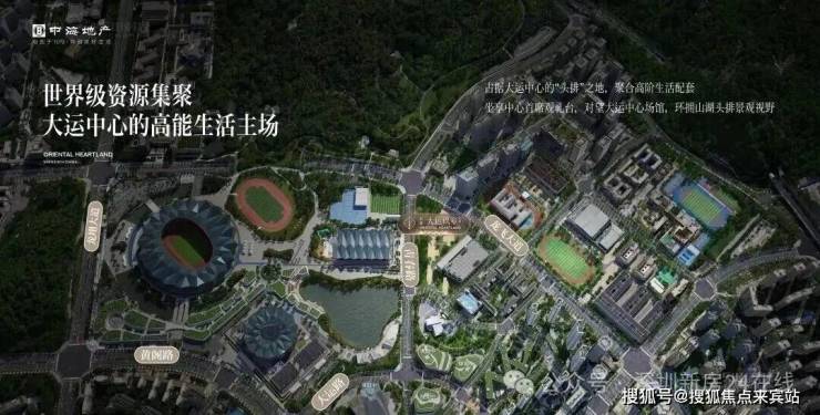 大运中心拥有深圳最大体育场,一场两馆可同时容纳约8.1万观众,具备国际田联(IAAF)、国际泳联(FINA)等最高标准认证的专业场馆设计,是国际赛事与超大型演出的首选。项目头排对望大运中心,,近享家门口的世界盛会。(信息来源:龙岗区文化广电旅游体育局官网)