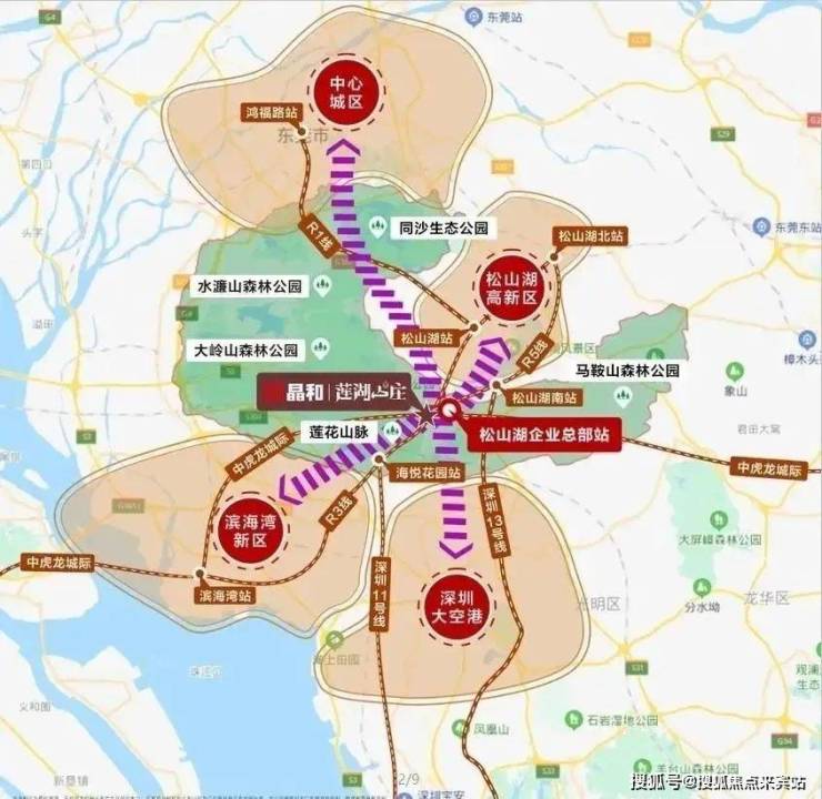 项目堪称天选之子,离尘而不离城,位于滨海湾新区和松山湖高新区的黄金中轴。4地铁+1城轨+5高速的高配置,贯通深圳和东莞南北向的交通路网,全面连接整个大湾区。