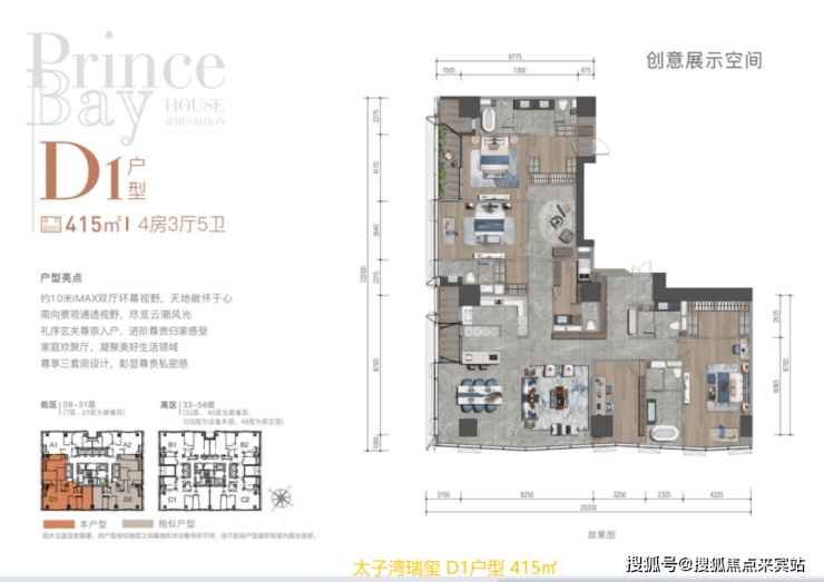 太子湾瑞玺 顶层,层高3.6米 59层(专梯入户)