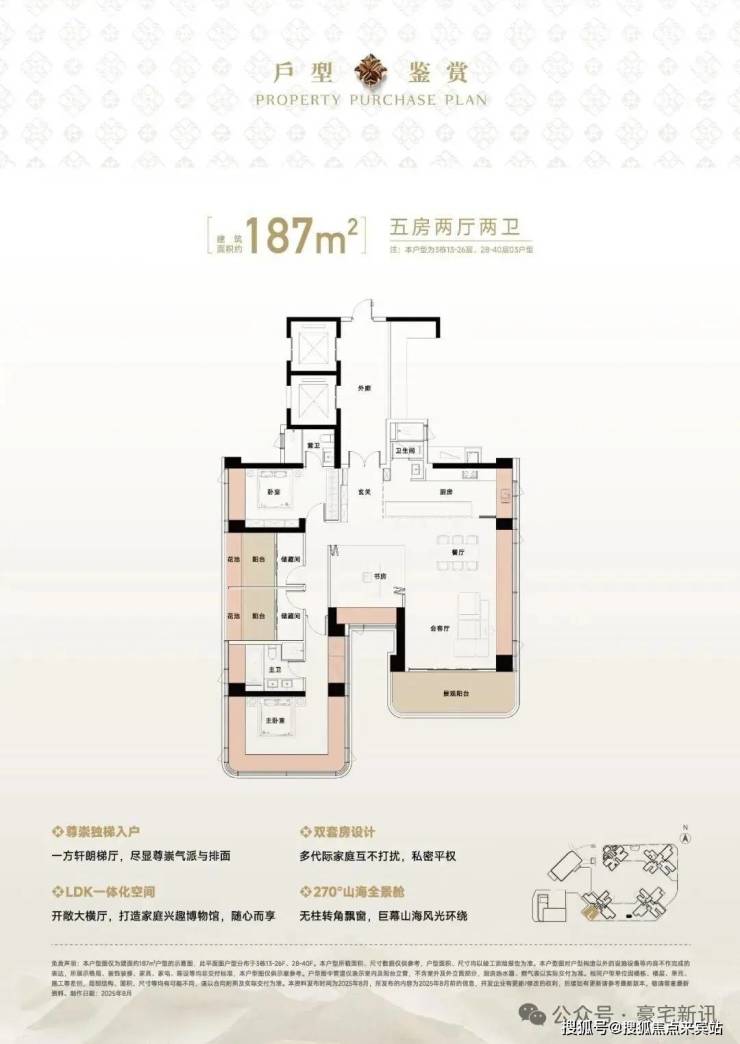 【梯 户 比】4梯5户(低区)/4梯4户(高区)、建面约125㎡以上专梯专户