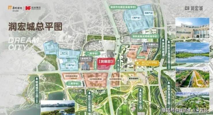 华润润宏城,位于光明区凤凰街道塘尾社区,总占地面积约195万㎡ ,总建筑面积约382万㎡,住宅面积高达172.44万㎡,分多期多地块开发,其中一期就分4个地块开发,前期入市的是润雅园已经基本售罄,还剩少量4房在售,这次润臻园就是1期其中一个地块,后面还有二期三期,另外产业配套也分4期开发打造,还规划有3所九年制学校、2所18班幼儿园,3所12班幼儿园,3所9班幼儿园。