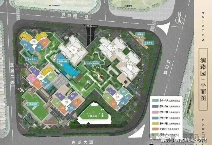 润臻园(2-12地块)位于东明大道和松白路西北侧,规划建筑面积约29万㎡,由7栋高层住宅围合组成,润臻园相比一期更大一些,户型也是做得更好。