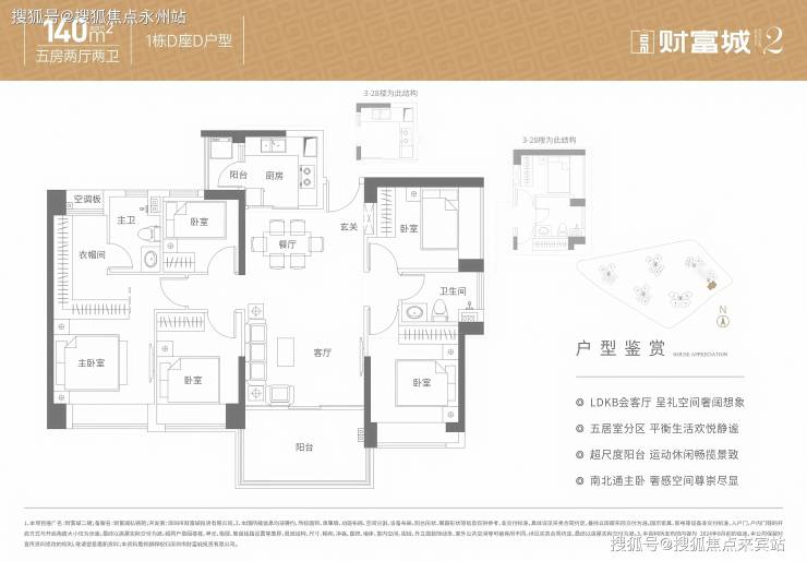 140㎡ 5 房 2 厅 2 卫(双龙抱珠格局)