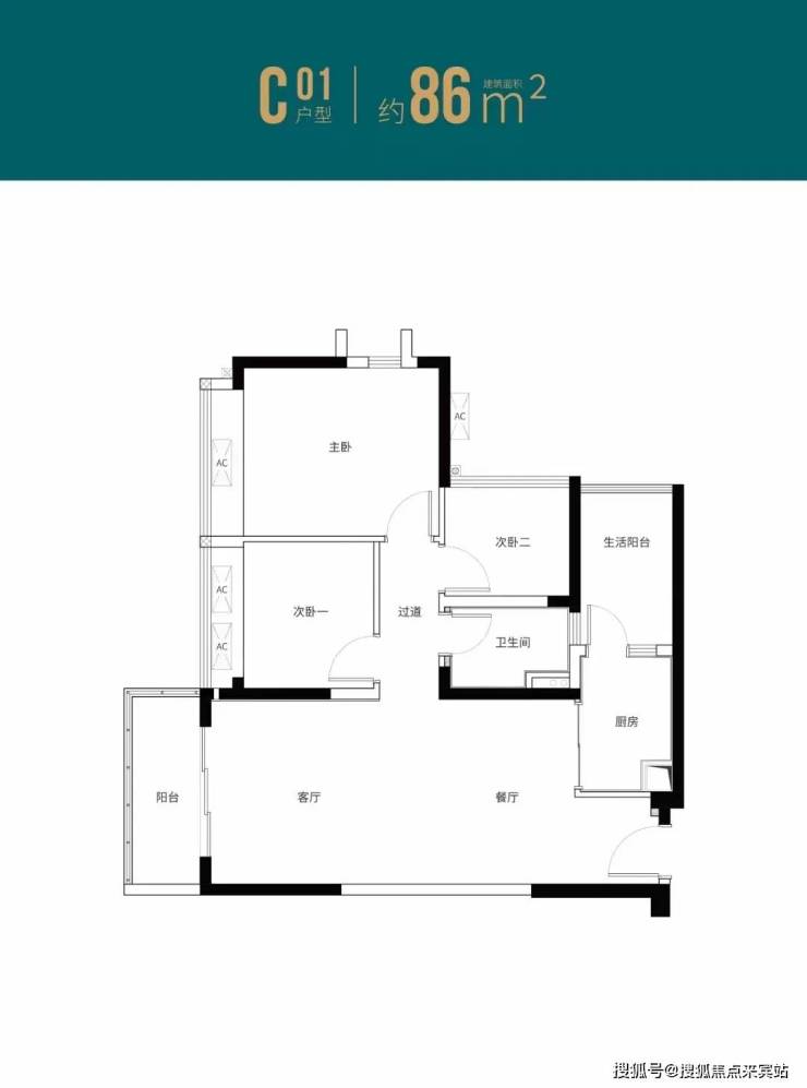 81㎡3房2卫:包含南北通透户型和经典竖厅户型。