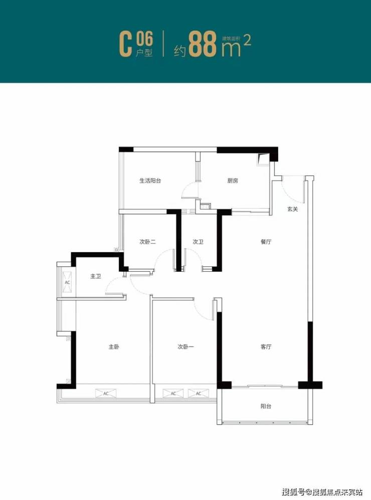 89-109㎡4房2卫:包含南北通透户型和经典竖厅户型,109㎡户型带双阳台。