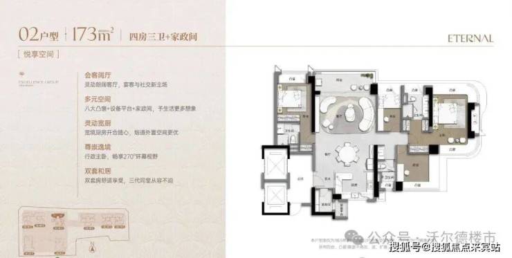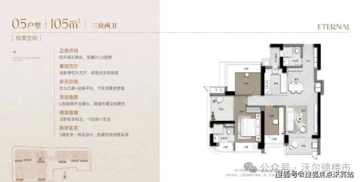 超高使用率(90%+):通过“弹性方厅”(可变空间)、设备平台外拓、多飘窗实现。