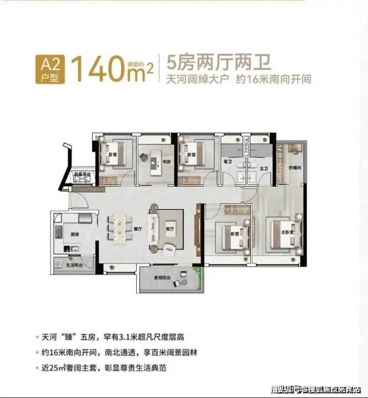 户型:76-194㎡三至五房,灵动空间设计,拓展率超90%