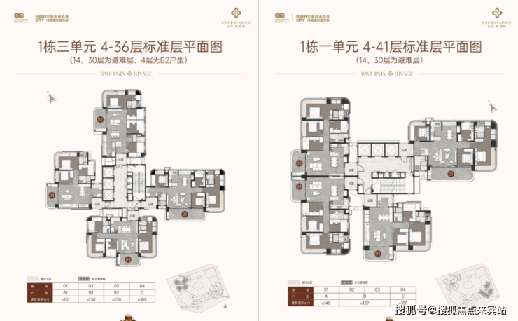 户型对比前一期紫荆府的差异就是没有追求一梯一户的布局,电梯厅采用传统布局,但是保留了每户入户前的独立公共空间。这样的好处就是增加了得房率又兼顾了私密性。