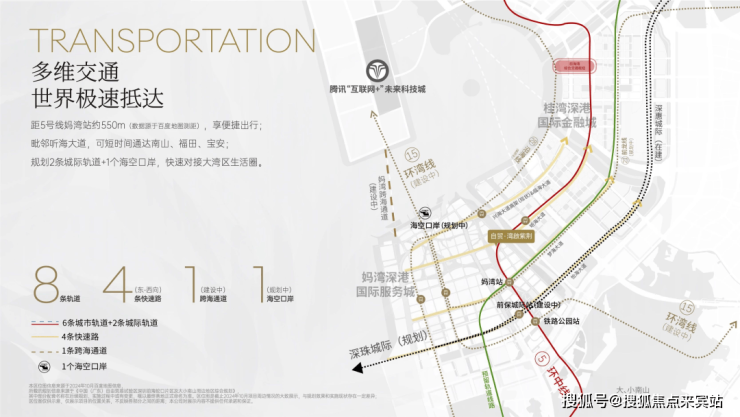 交通:距离5号线妈湾站约600米均,此外,将还有15、21、27、穗莞深城际等多条轨道交通串联前海与其他重点片区。