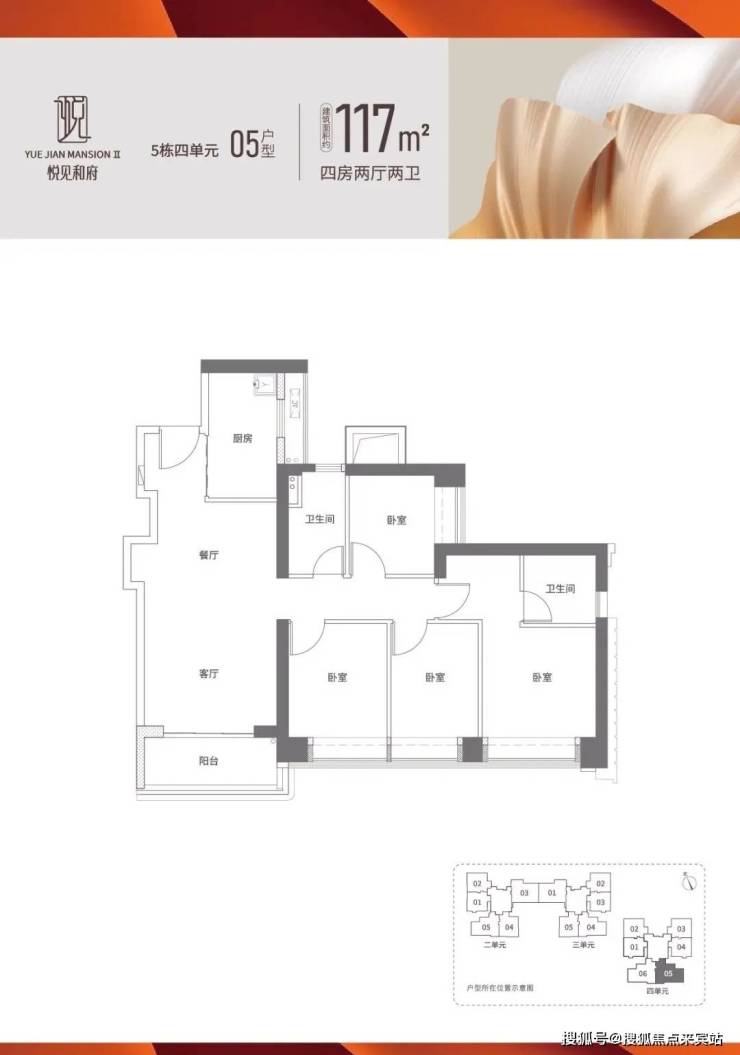 二期和府:5栋二单元和三单元,3梯5户和3梯6户,总高50/57层。建面约92㎡三房两卫,117㎡四房两卫,129㎡四房两卫共三个户型