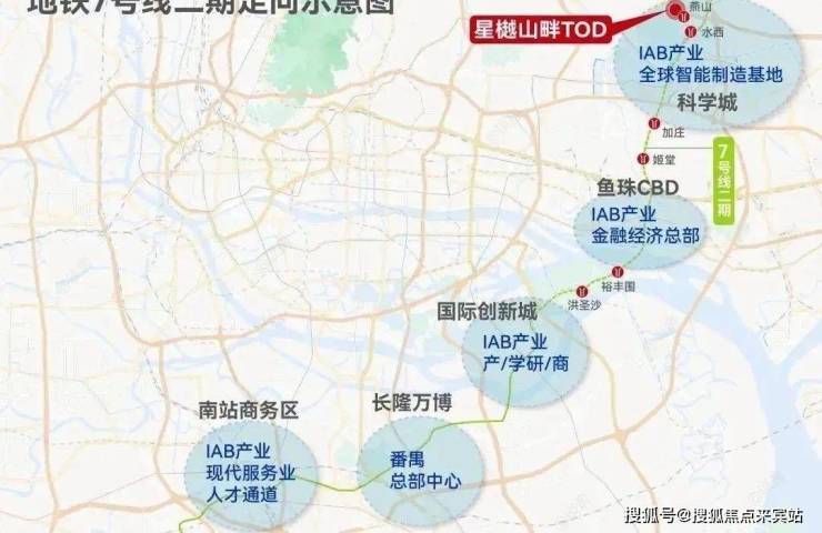 7号线含金量极强,串起佛山北滘新城、广州南站枢纽经济圈、番禺万博CBD、国际创新城、大学城、黄埔鱼珠CBD以及科学城,打通产业链的任督二脉。