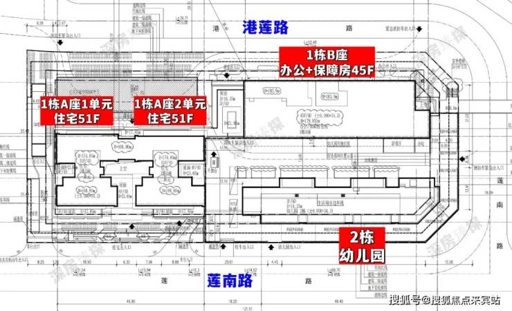 莲塘金岸里,由兆丰源公司打造,其背后股东是金展集团,属于珠宝商跨界打造的第一个住宅楼盘,总占地面积约0.82万㎡,总建筑面积约11.59万㎡,计容建筑面积约8.66万㎡,容积率9.62,绿化率40%,共由2栋45-51层高住宅组成,其中1栋A座1单元/2单元商品房51F,1栋B座办公+保障性住房45F,2栋是1所幼儿园。