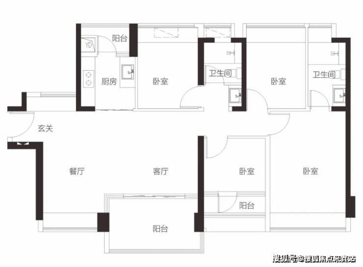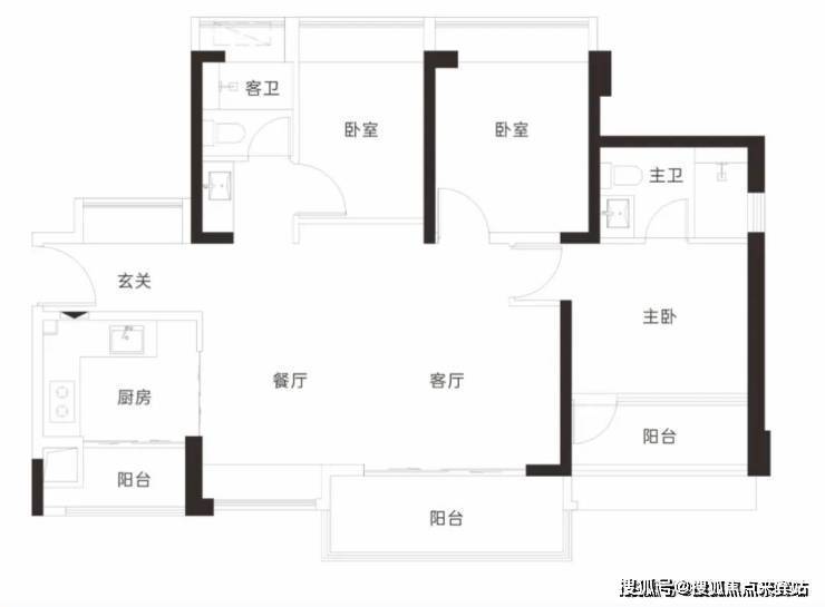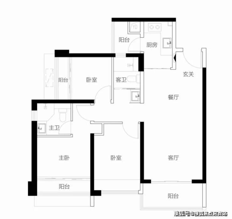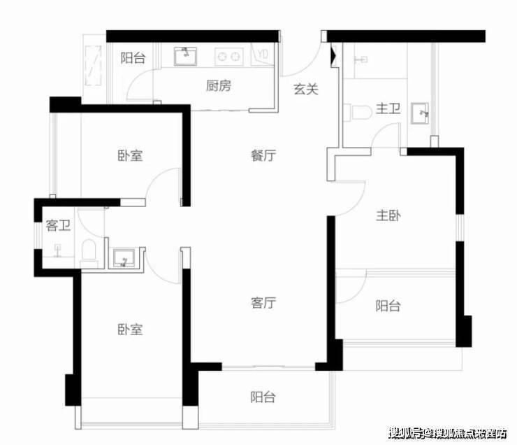 【3栋4栋01/02户型96㎡3房2卫】 客厅朝南带阳台,2房朝南,1房朝西/东