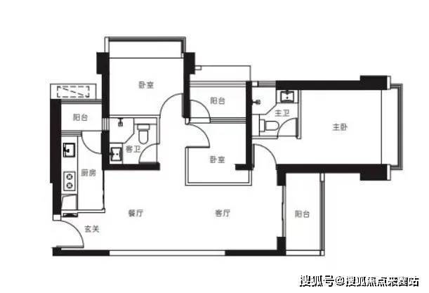 客厅横厅朝南带阳台,主卧朝南,2房朝北
