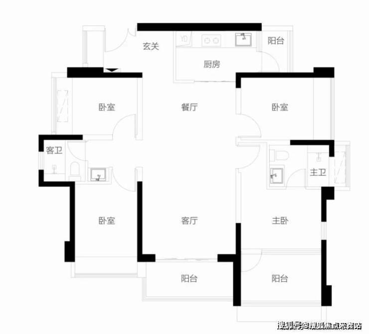 【124㎡4房2卫户型】