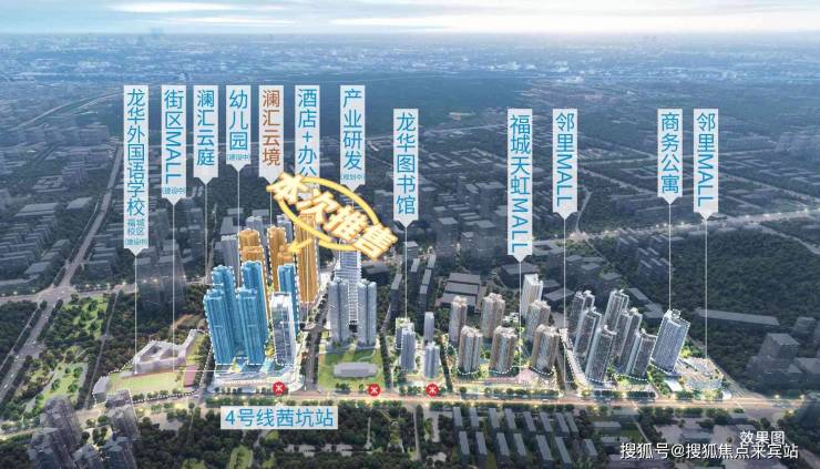 龙华百万综合体大盘,4号线北延线茜坑站地铁口物业合正观澜汇三期地块住宅方面两个区域中能卖的住宅约1883户可售住宅,