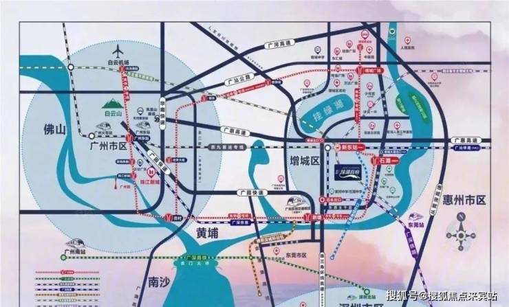 往北4公里,则是大家所熟知的广州新东站,石滩TOD项目。未来,遍布珠三角经济带的轨道路网将在这里汇聚, 聚拢无限流量、资金,进一步融入湾区。