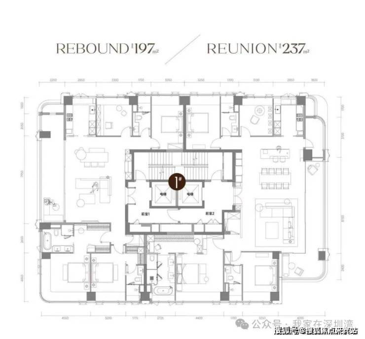 本次推出总共42套,建筑面积约197/237㎡2个面积产品: