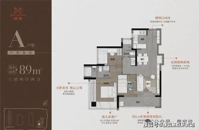 A户型:大阳台,主卧通过凸窗赠送衣柜,但次卧尺度都偏小,越过家居建材市场看向中粮大悦城写字楼,视野开阔