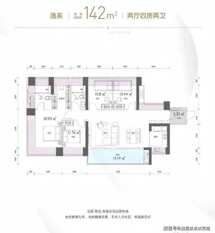 3个套房设计,把格调拉满,既保留家庭成员在核心公区互动交流的温馨,又为他们留予更多私隐空间,约23㎡超大阳台,对标豪宅尺度,