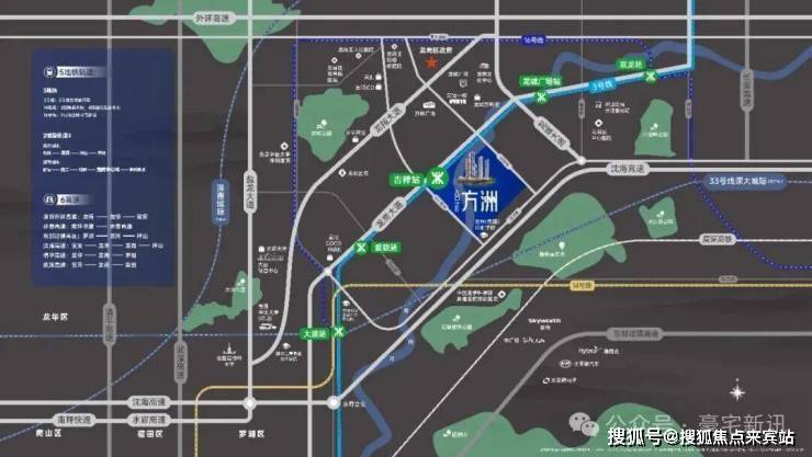 方洲无缝接驳地铁3号线吉祥站,两站换乘14号与16号线大运站,一部短剧的时间直达岗厦北。10分钟上水官高速、沈海高速,15分钟上外环高速,30分钟即达市内。
