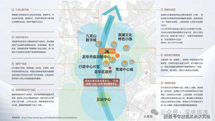 观澜占据龙华70%产业,鹭湖中心城与九龙山数字城双核驱动,聚焦人工智能、生物医疗等高新技术产业;