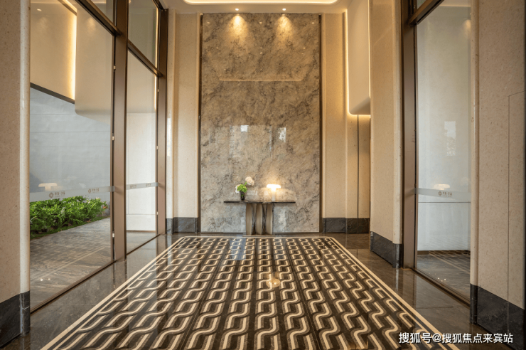 约7米挑高大堂,空间方正大气,无感通行,联动电动门厅与电梯,精奢空间搭配智能化贴心细节,归家尊崇感在这一刻拉满。