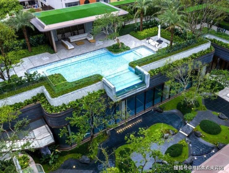 度假感下沉庭院,汲取东方园林山水造诣,因地制宜打造叠水叠石,形成特色森系庭院,漫步其间宛如森居度假。