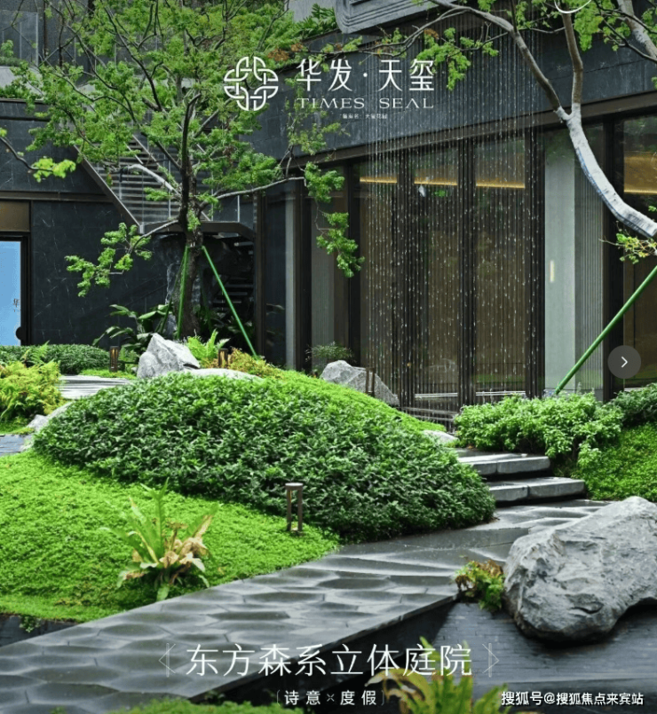 华发·天玺携手景观设计天团DDON笛东,以“东方森系立体庭院”为理念,打造一座可与自然对话的沉浸式园林。从叠溪流瀑到静谧水院,再到观景平台,形成“仰观瀑布,俯听溪声”的立体景观序列,营造出移步异景的森居体验。