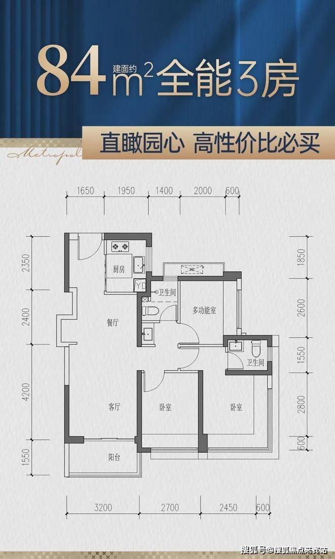 ,设计的是经典竖厅格局,客厅3.2米开间,LDKB一体化,S墙设计预留冰箱卡槽位,三开间朝南,3个卧室分别做到了主卧12.37㎡/次卧9.18㎡/次卧6.76㎡(包含墙体飘窗),U型厨房,卫生间三段式分离,得房率约77%(不含赠送),西南或东南朝向。