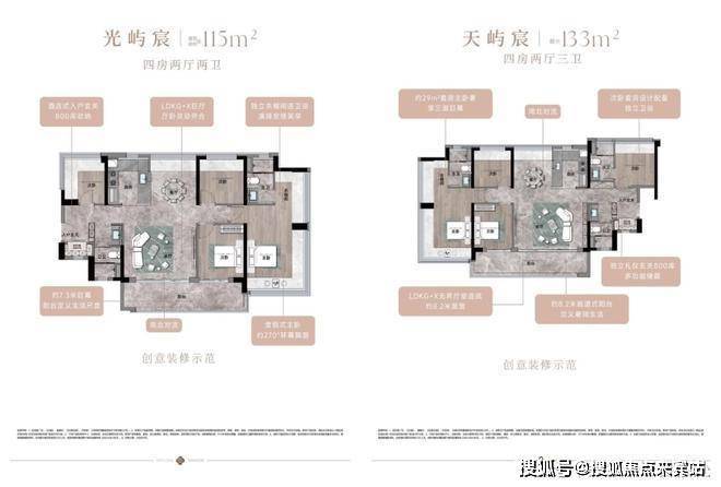 115-132㎡4房2卫:改善型户型,部分房源配备独立玄关、厨房烟道外置及 800 库,空间利用率更高。