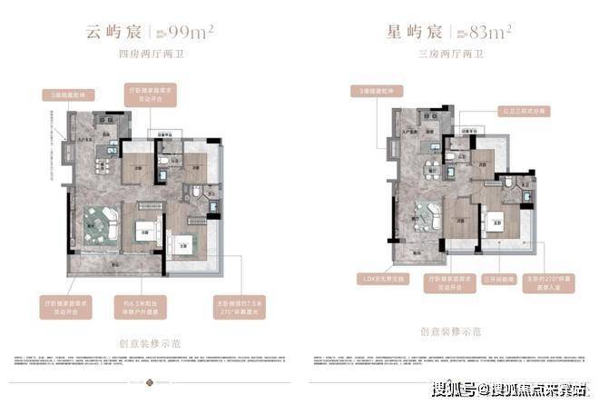 项目所有户型均符合2023年深圳新规要求,得房率(含赠送)达100%,例如 83㎡实现3房2卫,99㎡做到4房2卫,空间利用率显著高于同期竞品。