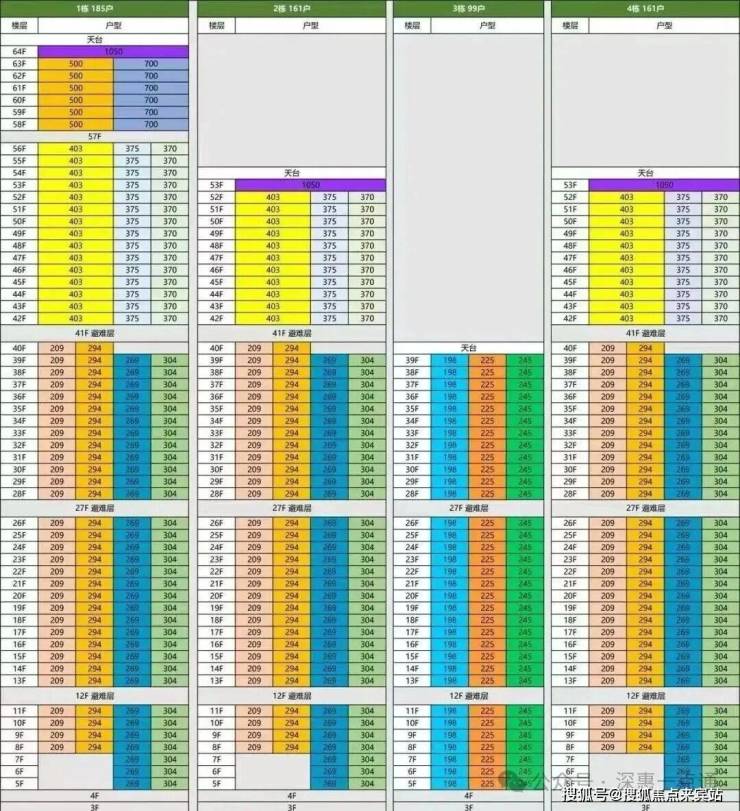 超高区(58层起,200米以上):约500-700㎡顶级大平层。
