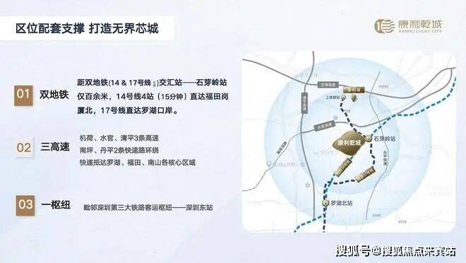 距双地铁(14&17号线)交汇站——石芽岭站仅百余米,14号线2站罗湖,3站福田,17号线直达罗湖口岸;