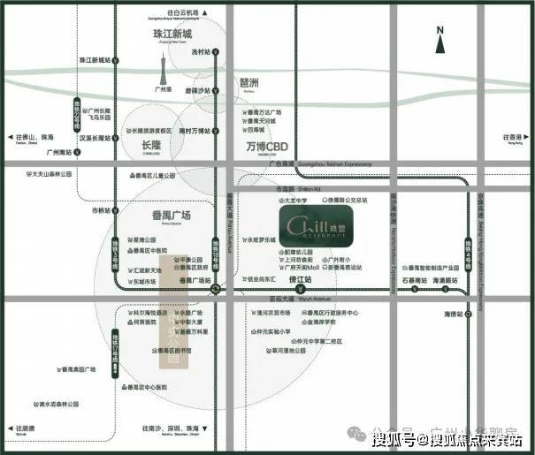 一站即达番禺广场站:地铁3号线、18号线、22号线、3号线东延段(在建中) 、17号线(规划中),五轨交汇,一站畅行琶洲,两站通勤珠江新城。