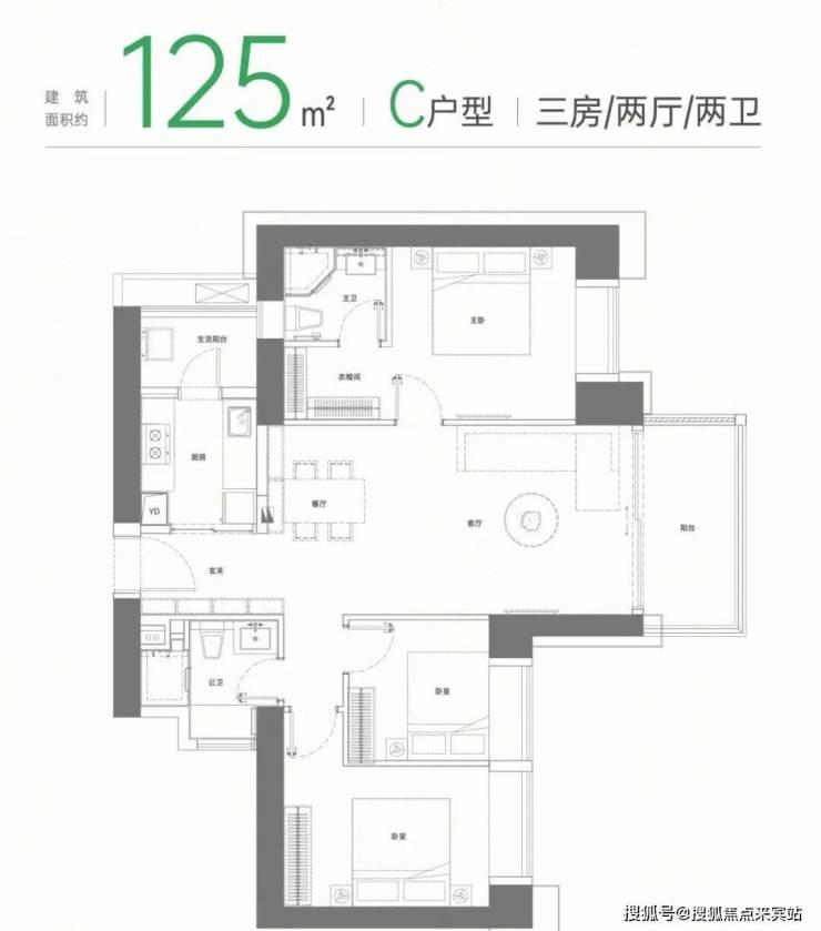 125㎡三房:户型多样,不同朝向均有采光。设置入户玄关,兼具隐私和收纳功能。飘窗和阳台拉开居住视野,主卧私享功能完备。LDK一体化设计打造无边界、社交化的餐客厨系统,让居民在烹饪、用餐和娱乐中都能感受到家的温馨与舒适。