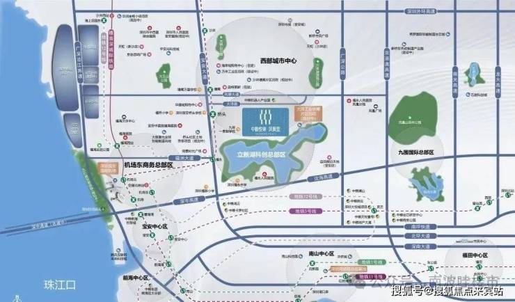 项目位于深圳市.宝安区.福海街道.立新湖片区,稔田社区大洋路与塘新路交汇处西南侧,北侧一路之隔是中粮凤凰里花苑小区、南侧直线约400米是立新湖水库(立新湖公园),距离11号线桥头站D2出口步行约650米。项目属性旧改用地,分两期开发,目前开发的是二期。