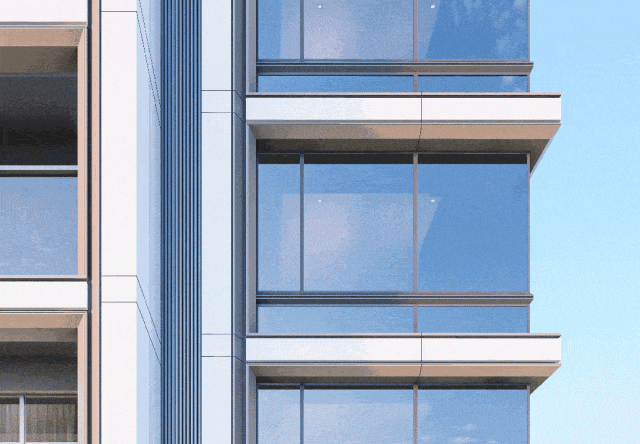外立面色彩亦是一种艺术。在颜色搭配上,项目从传统灰白色的公建化立面得以进化,以暖色相间的香槟金线条点缀其中,营造温馨感住宅立面。不仅创造出了视觉上的序列变化,更呈现出色彩的韵律感。