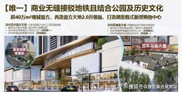 鸿荣源观城作为观澜CBD综合体大盘,从建设初期就一直广受关注,迭代升级的壹方天地2.0版本,集超40万㎡一站式观城壹方商业、3所全龄段公立学校、5大生态公园、三甲医院及甲级写字楼集群于一体,以全维配套矩阵重塑区域价值,打造深圳西部醇熟生活新范本!