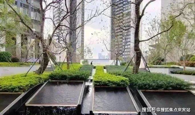“近看落花至,远闻流水香”。听水入境,迈入第一重归家礼遇——“林下台地”生态迎宾水景,规则、细腻的线式跌水将视线高度抬高,淙淙的流水之音主动打破建筑的单调,赋予景观独特而灵动的美感。