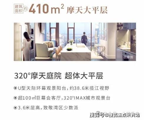 户型设计:298-410-708㎡全幕墙大平层,3.6米层高(远超市场2.8米标准),120㎡巨幕会客厅,38.6米U型环幕阳台(中山最长),320°全景视野揽江、城、园三景。