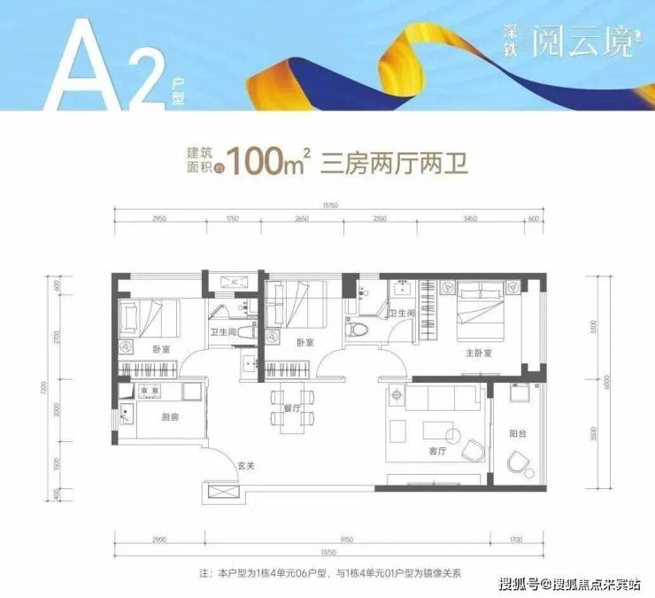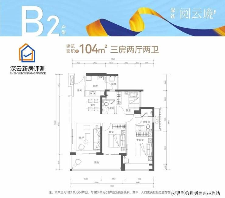 【户型面积】约100-104㎡3房