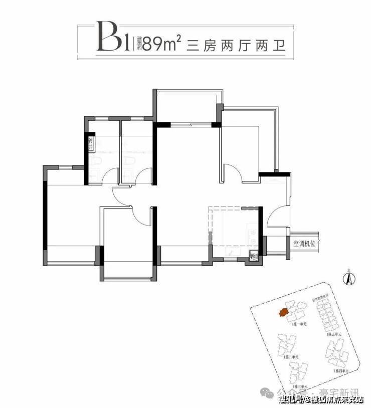 二:建面约89平方B1B2户型三房两厅两卫