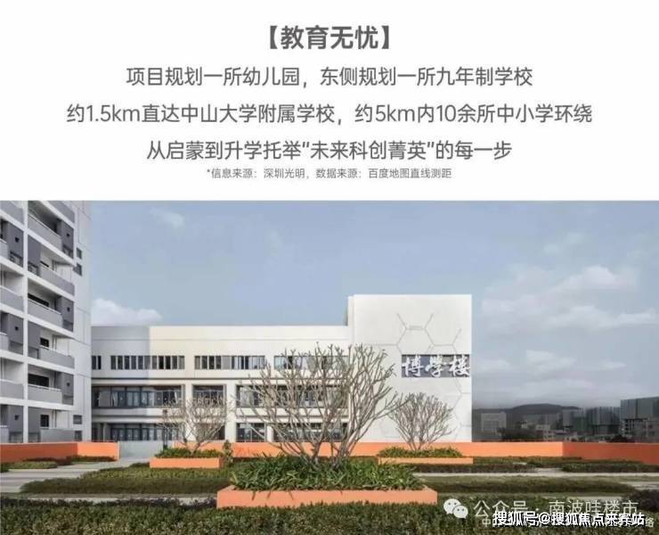 【教育无忧】:项目规划一所幼儿园,东侧规划一所九年制学校,约1.5km直达中山大学附属学校,约5km内10余所优质中小学环绕,从启蒙到升学托举“未来科创菁英”的每一步