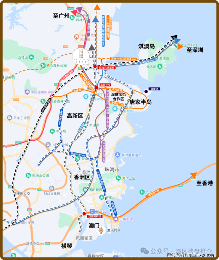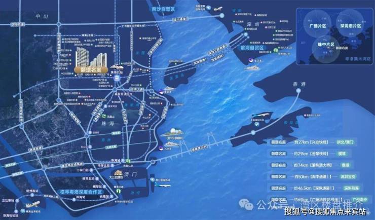 ●大湾区融城提速,項目位處深珠橋頭堡—高新區·“珠港澳硅谷”唐家灣,灣區西岸頭排,對望前海、香港,地理位置得天獨厚,坐享“雙特區”紅利,前景可期。