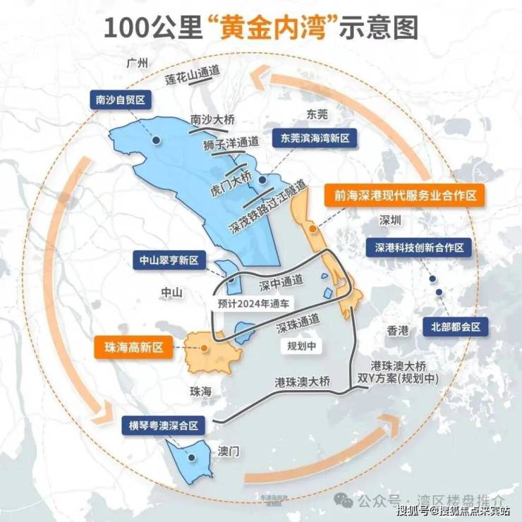 ● 廣東省第十三次黨代會報告提出:著力打造環珠江口100公里黃金内灣,帶動廣州、深圳、珠江口西岸三大都市圈協同發展。